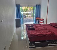 This clean, functional room offers a practical base for your stay. It features 1 bedroom and a bathroom with a shower. The air-conditioned unit includes a basic kitchenette with a microwave for simple cooking and food storage. There is a seating area and 1 bed. Please note: furnishings are simple and functional, prioritizing practicality over luxury design. ⚠️ IMPORTANT NOTES: View: The unit offers a functional view of the adjacent area (no sea or panoramic views). Noise: During the school week, increased noise levels may be expected during recess/break times due to the proximity of the neighboring school. This is an authentic island accommodation experience, best suited for budget-conscious and long-term travelers who value function and a good location. Guests seeking high-end comfort or quiet, guaranteed views should consider alternative bookings. We aim for a relaxing stay for all our guests.
